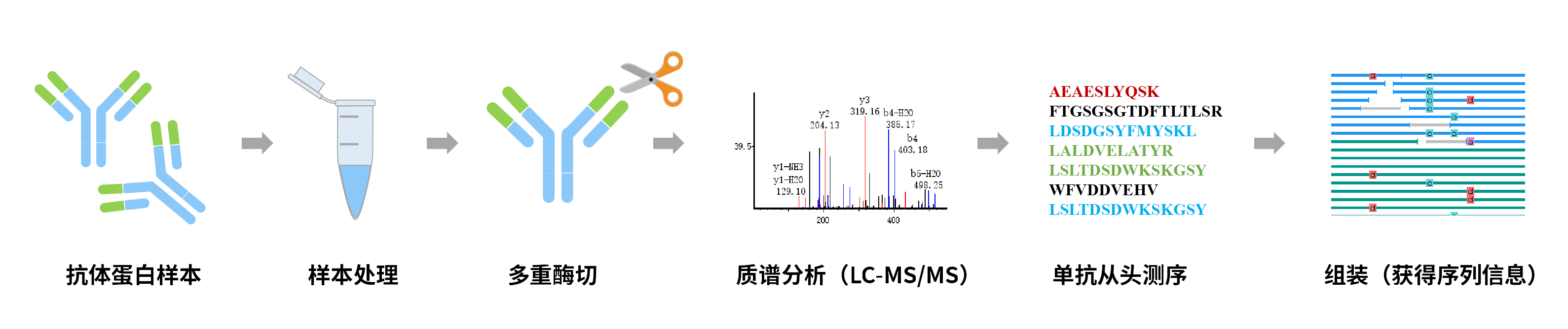 單克隆抗體分子在藥物研發(fā)、診斷試劑開發(fā)中扮演了關鍵的角色??贵w分子的一級結構,特別是其CDR區(qū)域的氨基酸序列是發(fā)揮其生物學功能的核心,對其完整序列準確快速的分析具有重要的意義。
